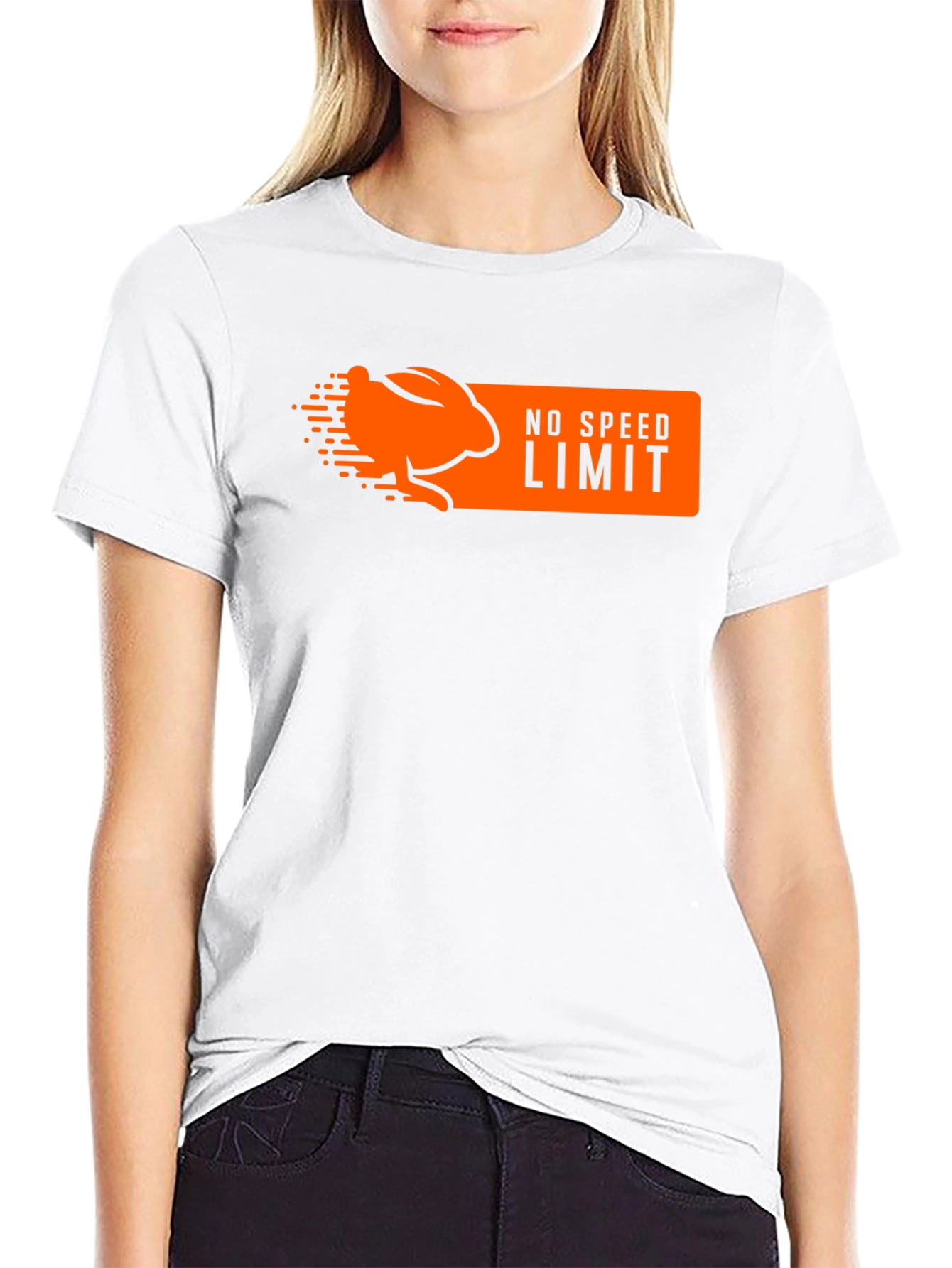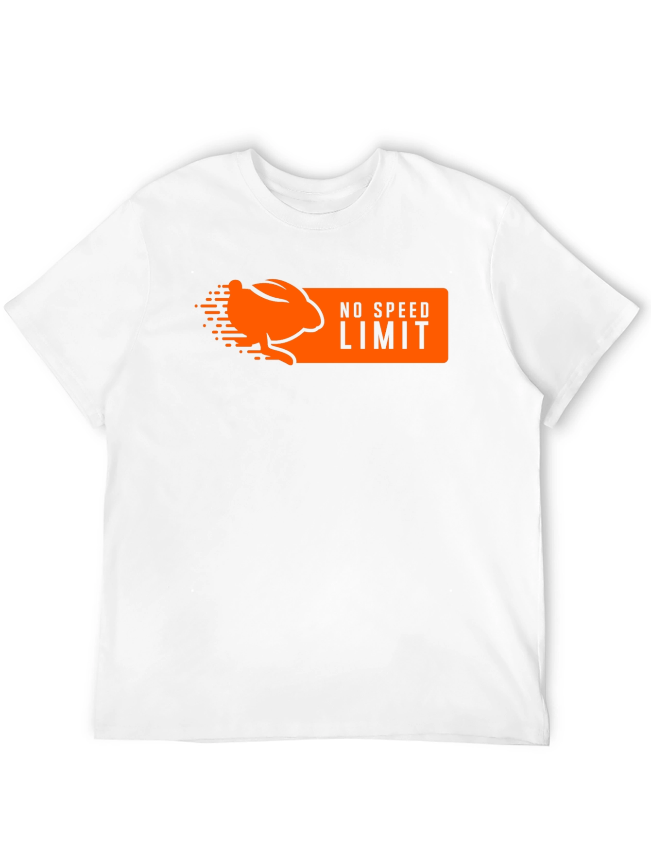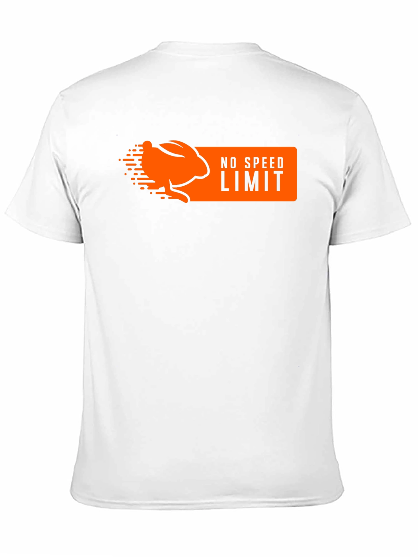 Muestra tu lado divertido con esta camiseta negra de manga corta. Presenta un diseño llamativo en color naranja con un conejo estilizado y la frase "NO SPEED LIMIT" (sin límite de velocidad), ideal para los amantes de la velocidad y el humor. Perfecta para un look casual y desenfadado, esta camiseta es cómoda y está hecha para durar. Combínala con tus jeans o pantalones favoritos para un estilo único e irreverente. ¡Atrévete a destacar con esta prenda original!