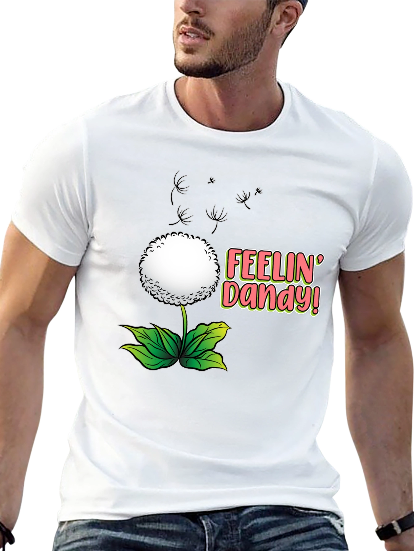 ¡Luce esta alegre camiseta negra con un diseño encantador! Presenta un llamativo diente de león blanco, con semillas flotando en el aire, y la frase "Feelin' Dandy!" en letras divertidas con contorno rosado. Las hojas verdes vibrantes completan el diseño. Ideal para un look casual y divertido, perfecta para expresar tu personalidad alegre y optimista. Fabricada con materiales suaves y cómodos, esta camiseta es perfecta para uso diario. ¡Añade un toque de alegría a tu guardarropa con esta prenda única y original! Muestra tu lado más relajado y disfruta de la comodidad y el estilo que esta camiseta te ofrece.